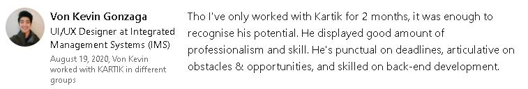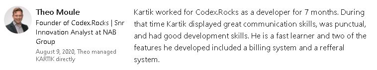 I have worked at some companies where I've contributed directly to the growth of the company, currently looking for full-time opportunities at an organisation which could help me grow not just as a professional but also as a person.